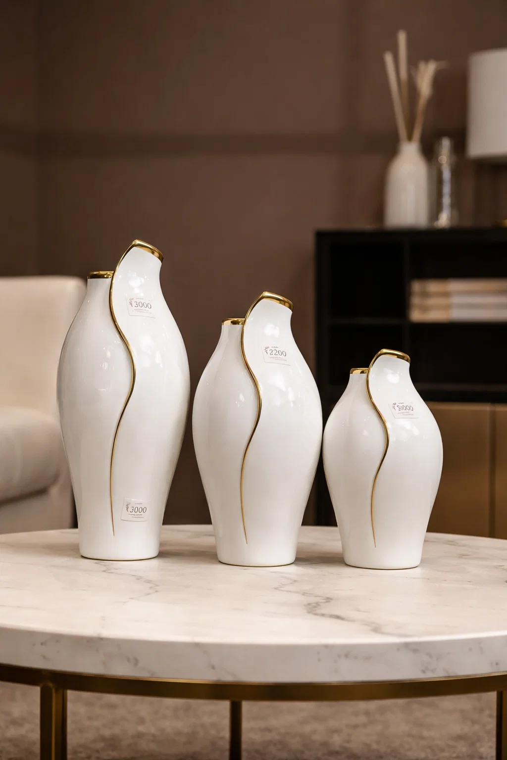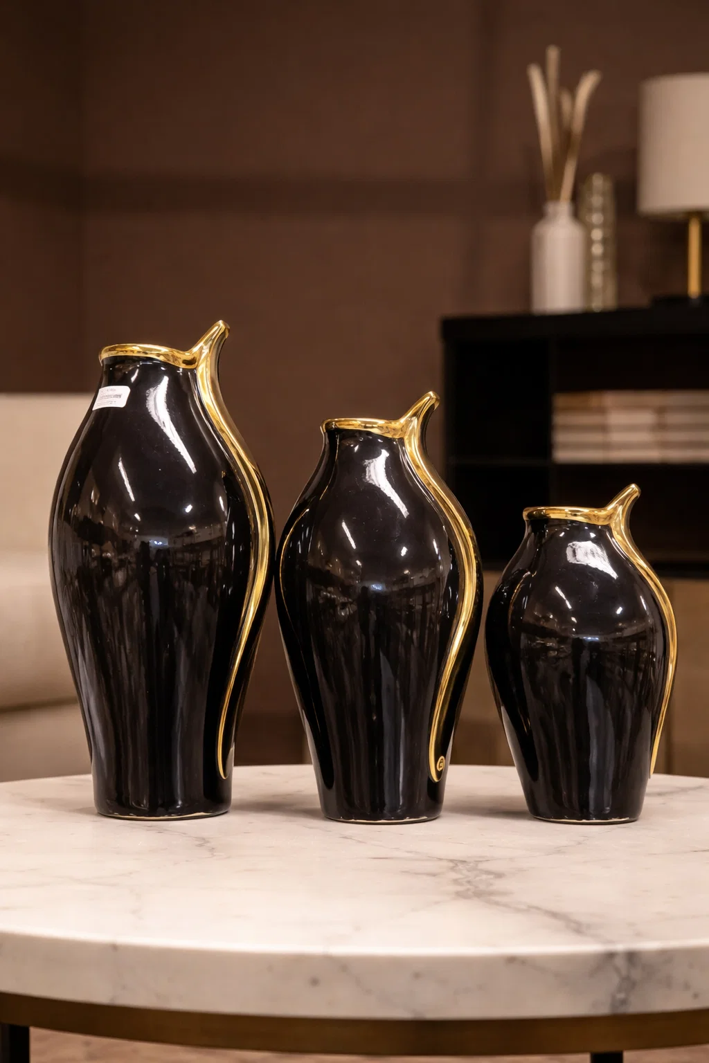 This shiny black ceramic vase adds luxury and depth to your décor setup. Perfect for modern interiors.